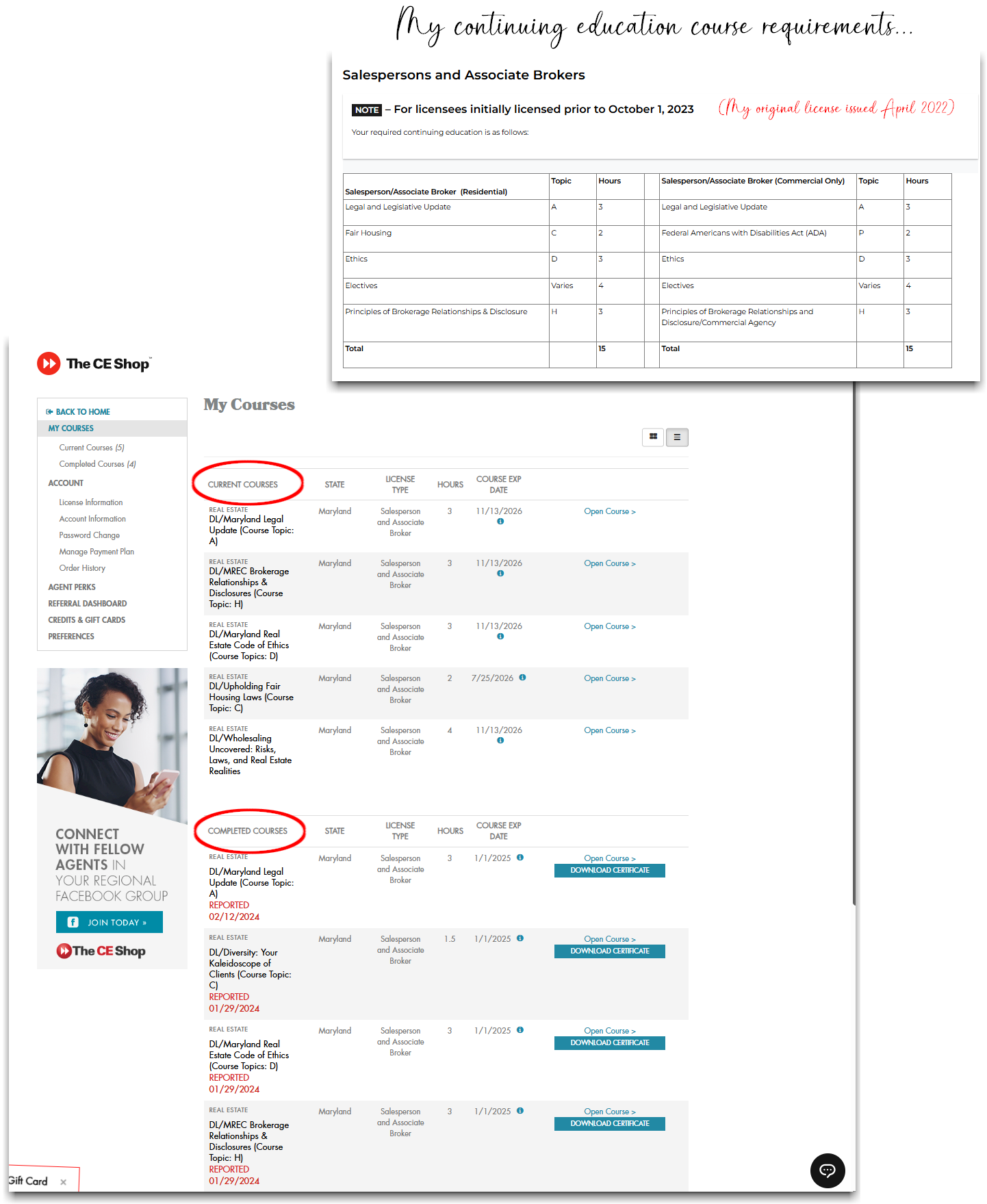 Yesterday, The CE Shop (a major player in the area of education for real estate agents across the country) sent a 40% off coupon so I decided to enroll in the course package I need to renew my license.