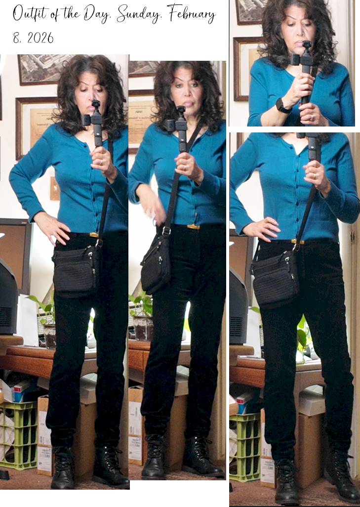 The slacks I wore on January 27, 2026 were Eddie Bauer chocolate brown cords. The black cashmere sweater was a holiday gift in the late 90s and the black cloth jacket my mother gave to me 20 years ago.